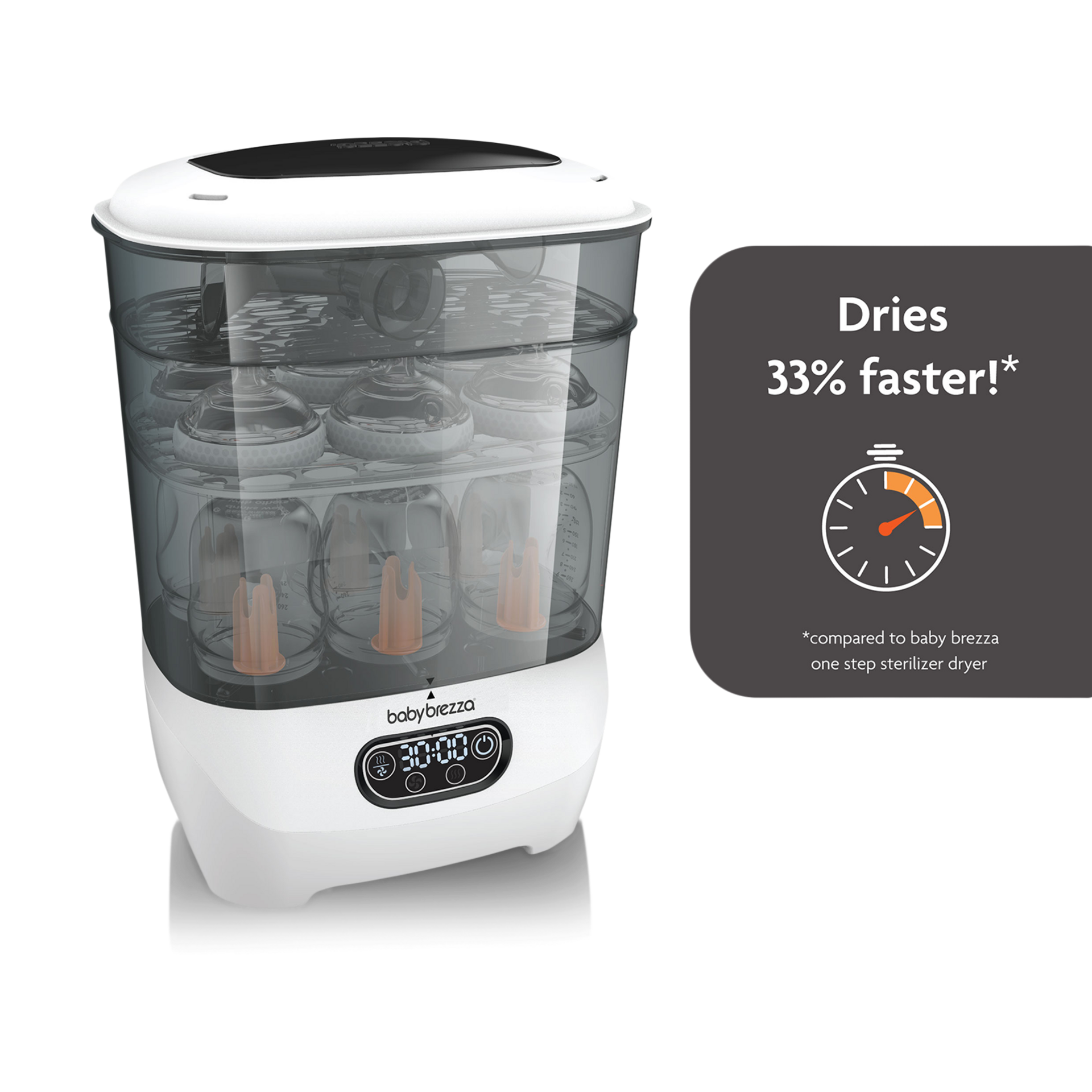 The Baby Brezza Steri-Dry Steam Sterilizer kills 999 of germs with an 8-minute steam cycle. Our baby bottle sterilizer dryer product automatically sterilizes and dries bottles of all brands and sizes as well as breast pump parts accessories and pacifiers in one easy step. Sterilize items in 8 minutes then dry them in as fast as 30 minutes.